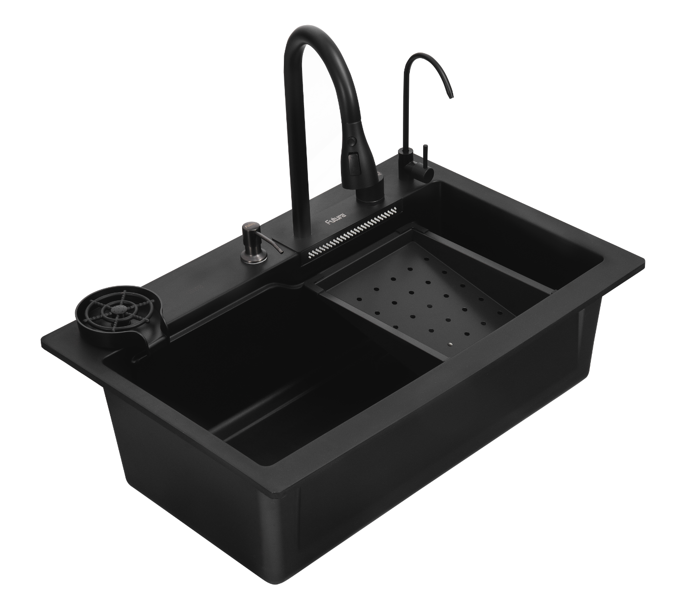 30-inch granite quartz workstation sink with integrated functional layout, available in Black and Grey finishes.
