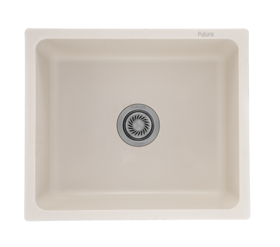 21″x18″ premium quartz single bowl kitchen sink with deep 8-inch bowl and natural quartz finish. Ideal for compact to mid-size kitchen counters with modern styling.