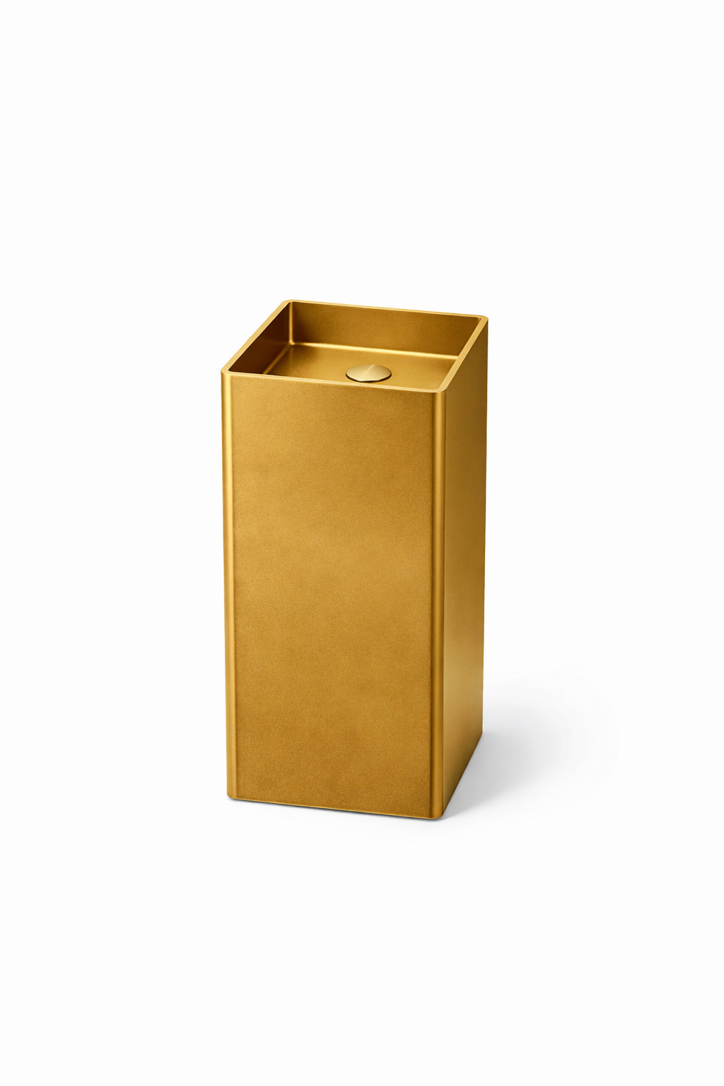 Upgrade your bathroom with a gold square standing wash basin. Elegant design, corrosion-resistant, and perfect for luxury interiors.