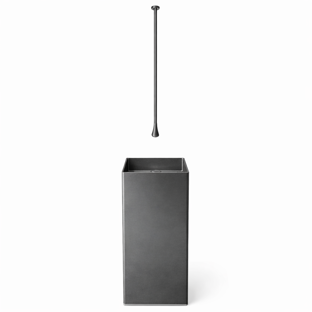 Shop square standing wash basin with sensor faucet in gun gray finish. Touchless operation, durable, and ideal for modern bathrooms.
