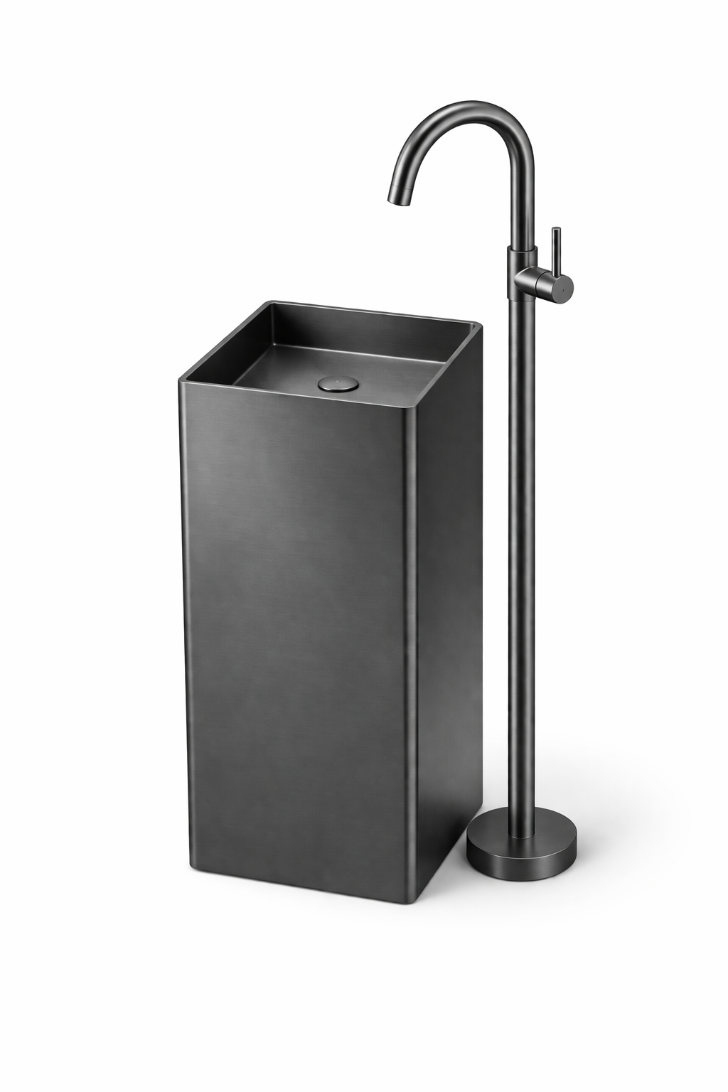 Shop square standing wash basin with faucet in gun gray finish. Durable, elegant, and ideal for modern and contemporary bathrooms.