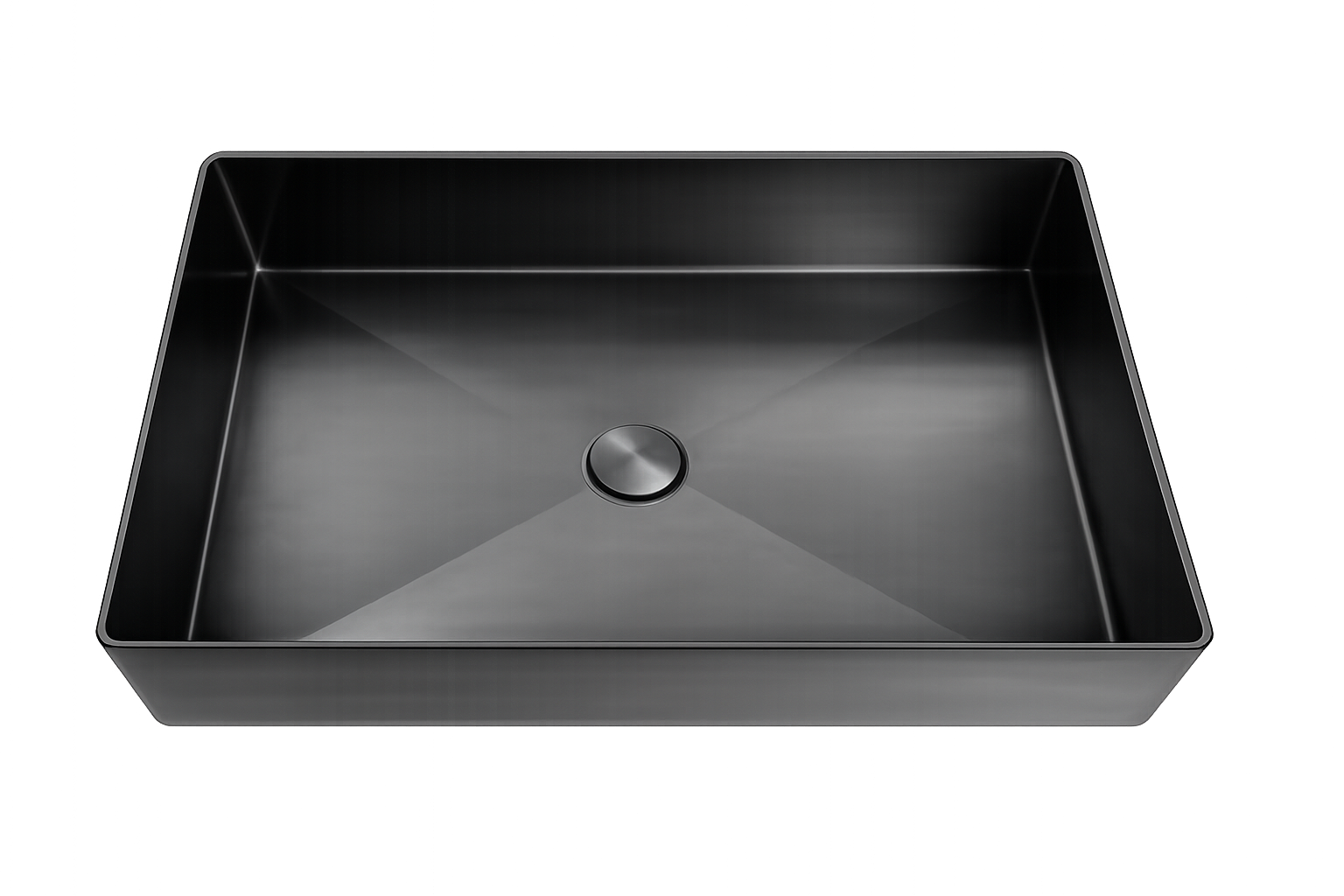 Buy square table top wash basin in gun black finish. Sleek, durable, and perfect for modern bathrooms and designer interiors.