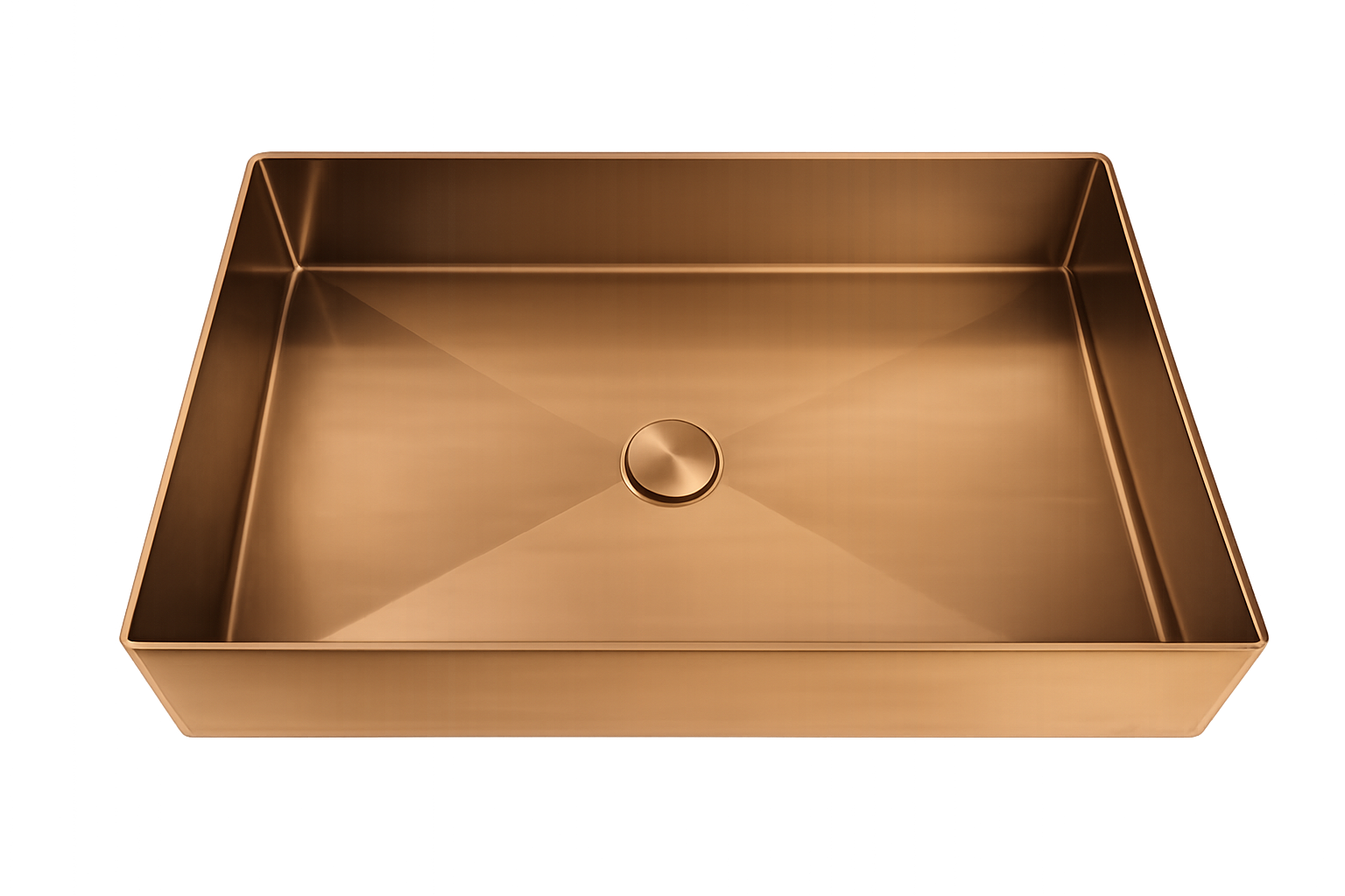 Discover an elegant rose gold square wash basin. Durable, modern, and perfect for premium and designer bathroom interiors.