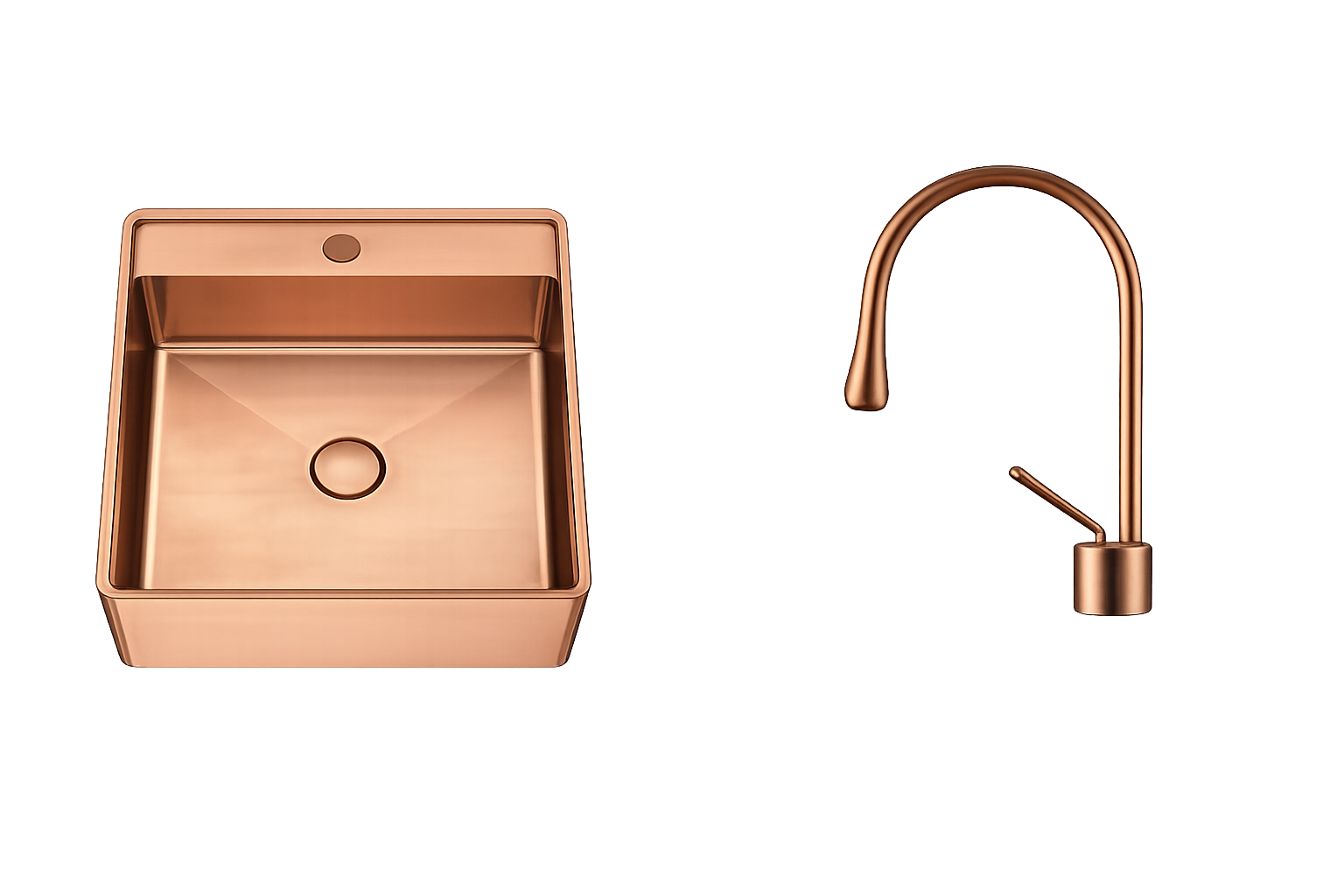Discover elegant square wash basin with faucet in rose gold finish. Durable, stylish, and perfect for modern and designer bathrooms.