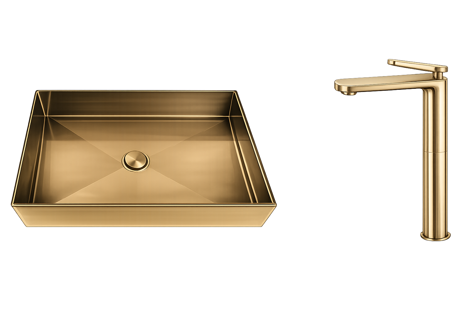Upgrade your bathroom with a gold square table top wash basin with faucet. Elegant design, corrosion-resistant, perfect for luxury interiors.