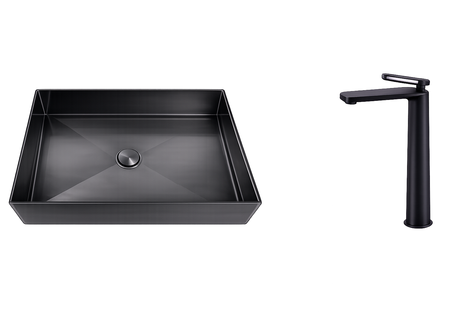 Buy square table top wash basin with faucet in gun black finish. Stylish, durable, and perfect for modern bathrooms and luxury interiors.